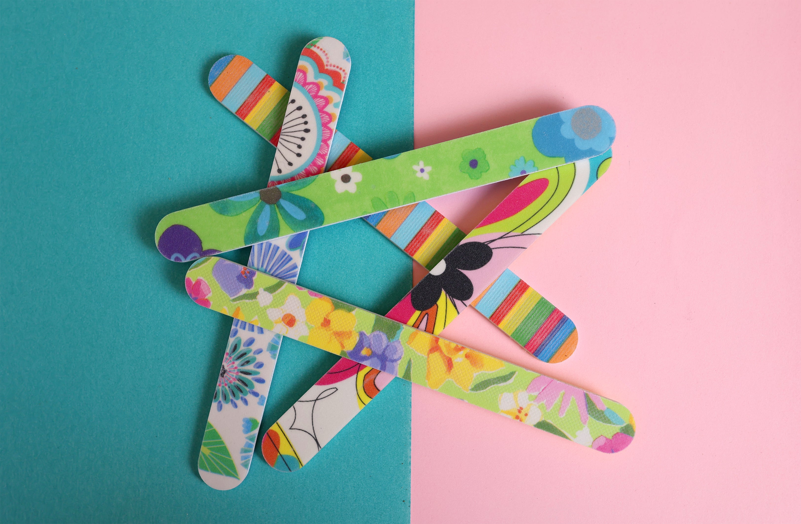 Eye catching abrasive prints on a 7" file! Choose from a variety of prints including florals, abstract & colourful designs. Print files can be designs with both prints and solid colour abrasives on the reverse side